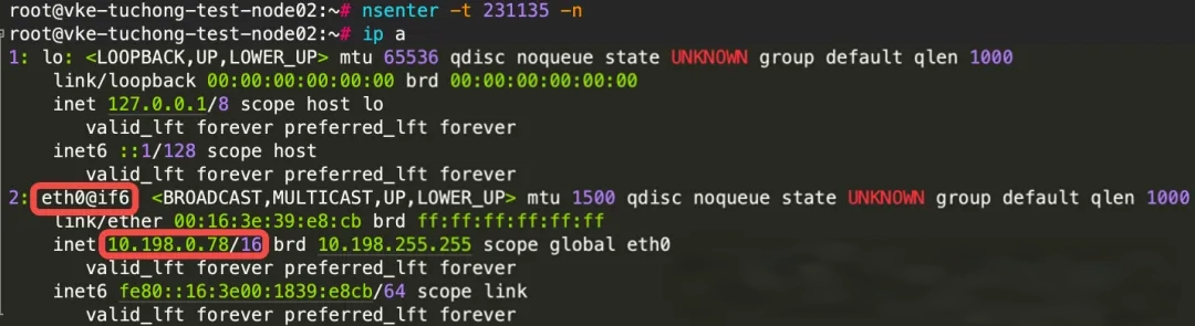 由此可见,我们可以通过 nsenter 进入 Pod 中容器(进程)的网络命名空间,利用 Node 节点已有的命令行工具实现对 Pod 进行网络调试。